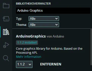 Für die LED Matrix benötigen wir noch zusätzlich eine Bibliothek, welche ebenso über den Bibliotheksverwalter samt Abhängigkeiten installieren.