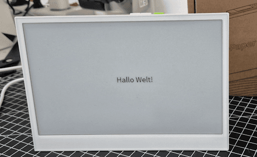 Als klassisches erstes Beispiel habe ich mich für den bewährten Einstieg entschieden – ein einfaches „Hallo Welt!“ auf dem ePaper.
