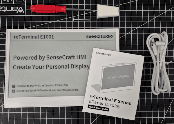 Der Lieferumfang des reTerminal E1001 ist kompakt, aber gut durchdacht. Neben dem Gerät selbst liefert Seeed Studio alles mit, was man für den ersten Einsatz benötigt: