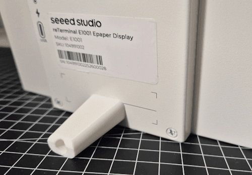 Zum Lieferumfang gehört auch eine Schraube samt kleinem Standfuß. Damit lässt sich das ePaper-Display stabil auf dem Schreibtisch aufstellen. Dank der hervorragenden Ablesbarkeit aus nahezu jedem Blickwinkel eignet sich das Display perfekt für die Platzierung direkt neben dem Arbeitsplatz.