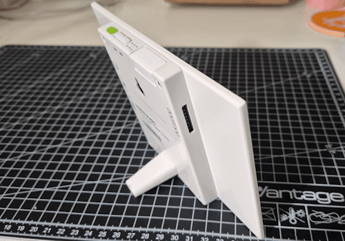 Schon beim Auspacken fällt die hochwertige Verarbeitung auf – das Gehäuse wirkt robust und durchdacht. Praktisch: Auf der Rückseite befindet sich eine Aufnahme für die Wandmontage, sodass das reTerminal nicht nur auf dem Tisch, sondern auch direkt an der Wand genutzt werden kann.
