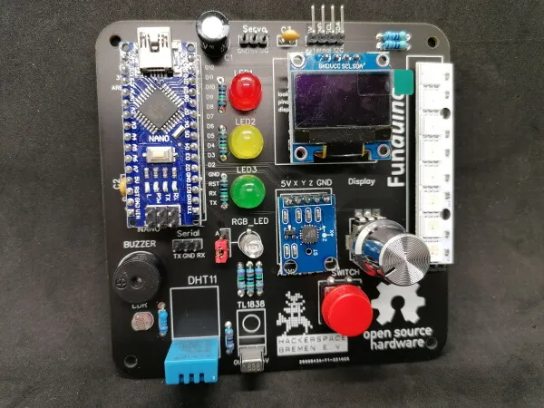 Die Platine ist in Zusammenarbeit mit dem Hackerspace Bremen e.V. und der Funduino GmbH entstanden.