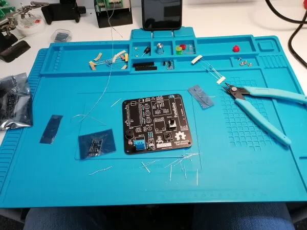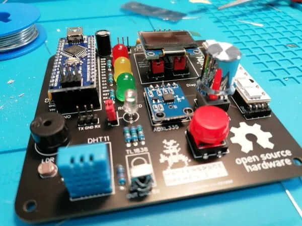 Die Platine wird zum selber aufbauen / löten geliefert und das Ganze ist in knapp 30 Minuten für geübte erledigt. Die Anleitung dazu findest du unter https://funduino.de/funduino-entwicklerboard.