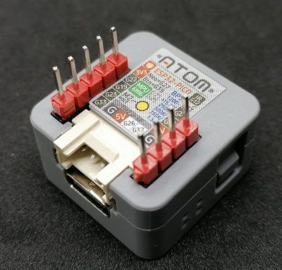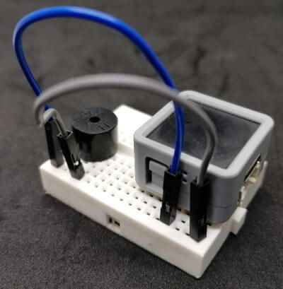 Man kann natürlich auch den Piezo Buzzer mit mit entsprechenden Kabeln „versorgen“ und an den ATOM Matrix direkt anschließen, jedoch steht dieser dann nicht mehr gerade auf dem Tisch.