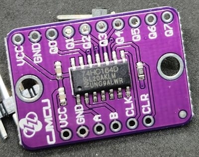 Beim Stöbern auf aliexpress.com bin ich auf ein kleines Board mit dem Schieberegister 74HC164D gestoßen und musste es einfach haben. Das kompakte Modul ermöglicht es, auf einfache Weise die Anzahl der digitalen Ausgänge von besonders kleinen Mikrocontrollern zu erweitern.