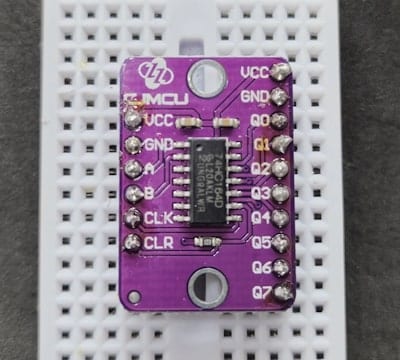 Es gibt dieses Schieberegister auch als einfachen Baustein wie das Model 74HC959 jedoch finde ich die Variante auf einer Platine etwas besser, weil man dort gleich die Pinbeschriftungen vorliegen hat.