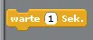 Zwischen den Schritten des einschalten und ausschalten der LED schieben wir jedes Mal den Block zum Warten von einer Sekunde.