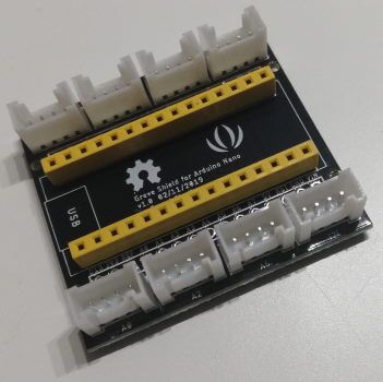 Der Mikrocontroller kann auf ein Breadboard gesteckt werden und von dort kann man bequem die digitalen und analogen Pins mit Breadboardkabel abgreifen. Jedoch gibt es speziell für die Grove Schnittstellen ein Grove Shield welches über mehrere solcher Buchsen verfügt.