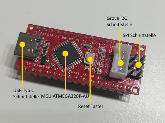Der Seeeduino Nano verfügt neben der genannten USB-Typ-C Schnittstelle auch über eine Grove I2C Schnittstelle.
