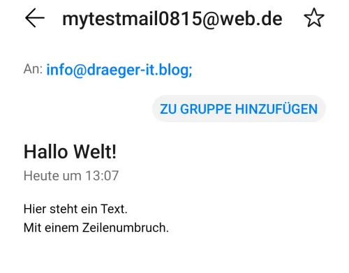 Wenn das Skript nun ausgeführt wird, dann erscheint beim Empfänger nachfolgende E-Mail.