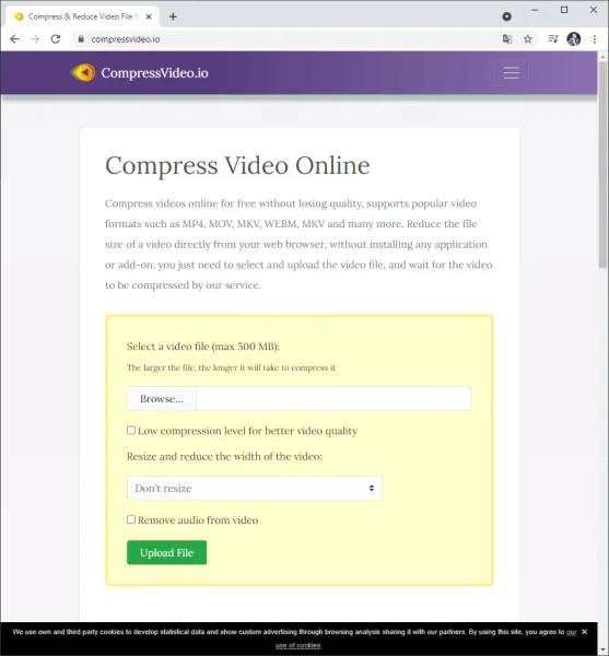 Damit deine Videos bei schlechter Internetverbindung nicht stottern empfiehlt es sich diese zu komprimieren, ich nutze hier das Tool CompressVideo.io.