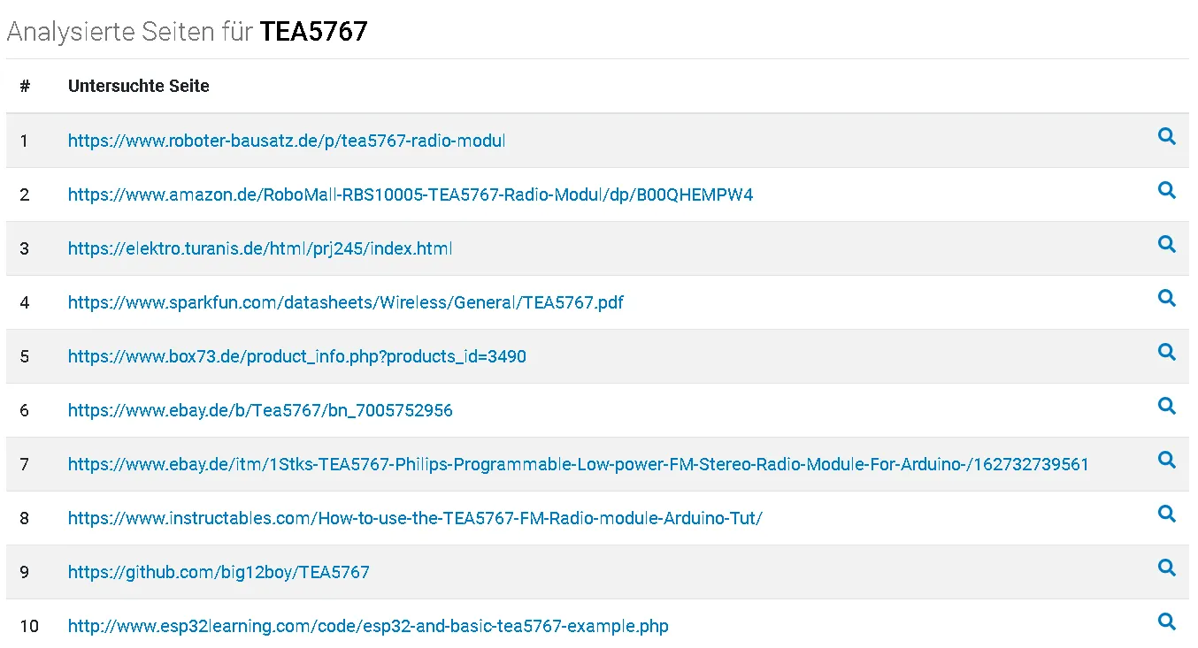 Schauen wir zunächst auf unsere Mitbewerber zu dem Keyword „TEA5767“