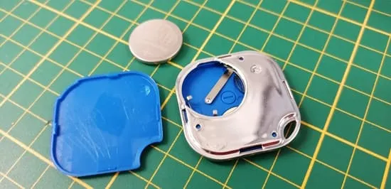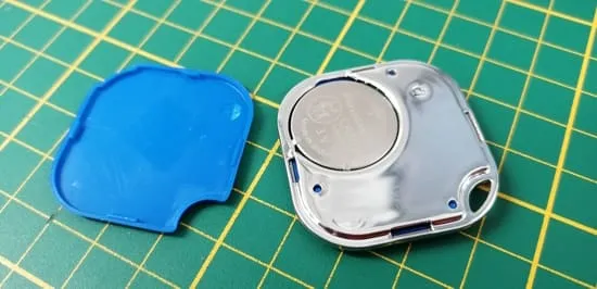 Bevor man den Button einsetzen kann, muss man die Batterie einsetzen, sobald dieses geschehen ist, kann man dann den Taster betätigen und damit das Gerät aktivieren (was mit einem Signalton bestätigt wird).
