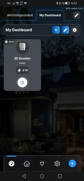 Als Erstes fügen wir den Button in der App hinzu. Wie erwähnt habe ich bereits ein Shelly Plus 1 Gerät eingerichtet und lauffähig!