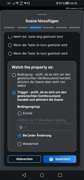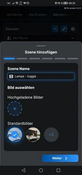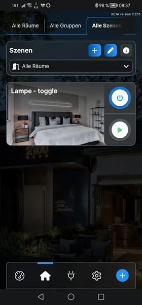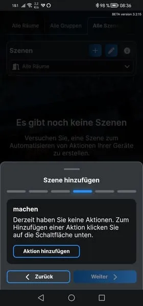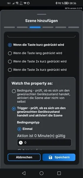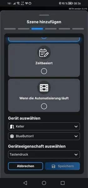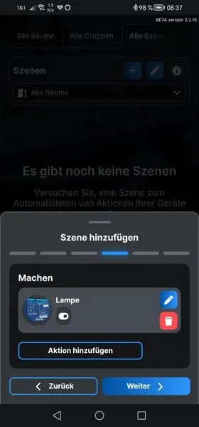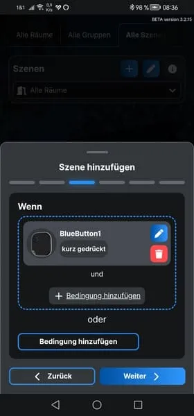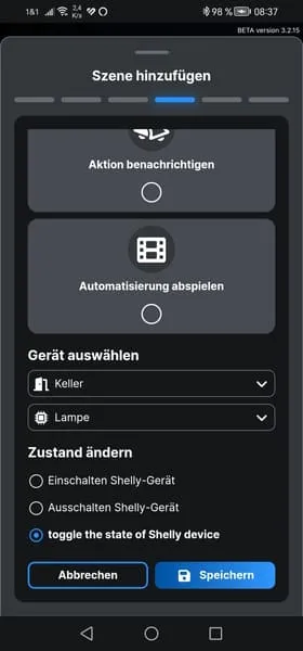 Da nun der Button mit dem Shelly Plus 1 verbunden ist, können wir eine Szene erstellen, um die verbundene Lampe zu aktivieren oder zu deaktivieren.