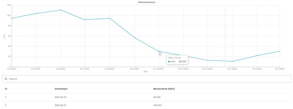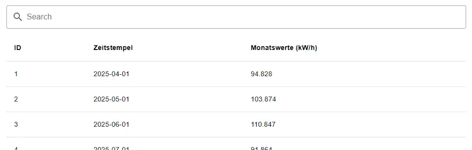 – Beschriftung: Zeitstempel / Monatswerte (kWh)