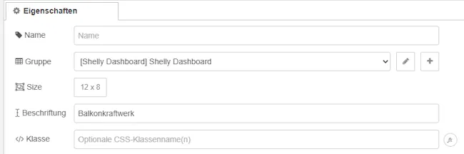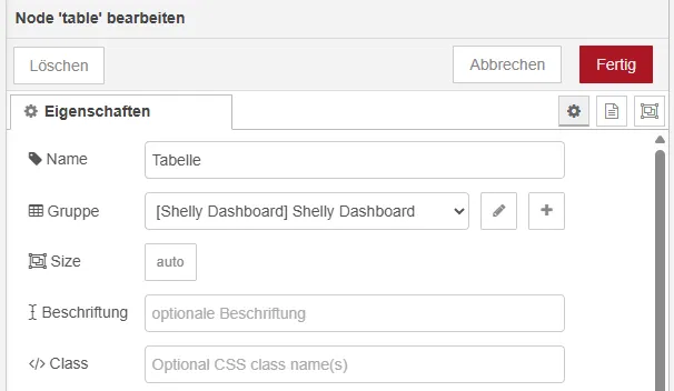 Die Tabelle wird der Gruppe „[Shelly Dashboard] Shelly Dashboard“ hinzugefügt und hat eine Größe von „auto“.