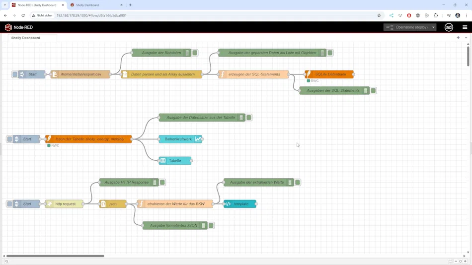 Im letzten Beitrag Shelly Energie-Dashboard mit Node-RED – Teil 1: SQLite & Datenimport haben wir die Energiedaten aus der Shelly Cloud exportiert und in eine SQLite-Datenbank importiert. Damit ist die Grundlage geschaffen, um die Daten unabhängig von der Cloud weiterzuverarbeiten und auszuwerten.