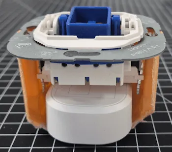Hinweis: Die Einbautiefe hängt stark von der verwendeten Unterputzdose ab. In einfachen Hohlwanddosen im Format 68×45 mm kann es bereits sehr eng werden – hier sollte man vorab prüfen, ob ausreichend Platz vorhanden ist.