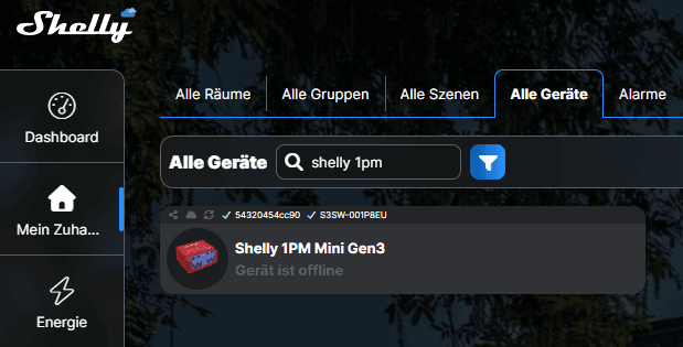 Wird bei einem Shelly die Cloud-Funktion deaktiviert, zeigt die Shelly Cloud das Gerät als „Offline“ an.