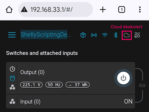 direkt auf dem Gerät gespeichert und aktiv. Aus Sicht der Shelly Cloud wird der Outdoor Plug zwar als „Offline“ angezeigt – lokal ist er jedoch weiterhin voll funktionsfähig und erreichbar.
