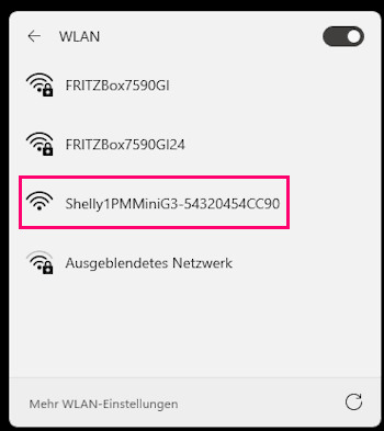 Wurde ein Shelly zuvor bereits verwendet und in ein WLAN eingebunden, ist der Access Point häufig deaktiviert. In diesem Fall taucht das Shelly-WLAN bei der Ersteinrichtung nicht mehr auf.