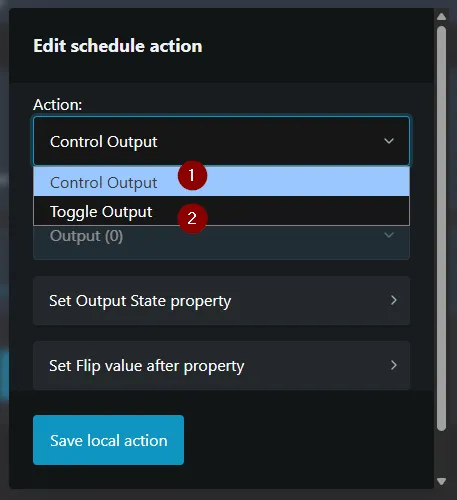 - Wähle aus der Auswahlliste „Action“ den Eintrag „Control Output“.