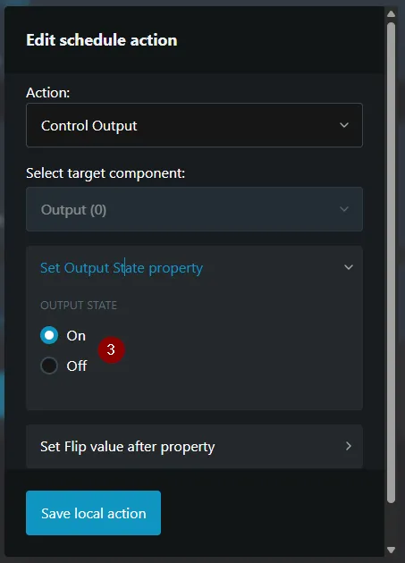 - Zum Schluss klickst du auf „Save local action“, um die Zeitschaltung zu speichern.