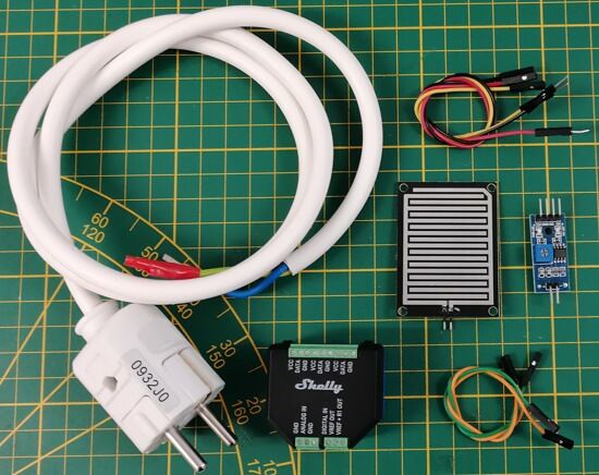 Für den Aufbau der Schaltung verwende ich einen Regensensor, welcher normalerweise für den Anschluss an einen Mikrocontroller der Arduino-Familie oder am Raspberry Pi gedacht ist.