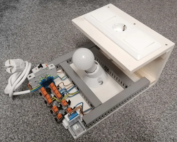 Ich habe dir hier einfach mal exemplarisch eine Lampe und eine Steckdose in die Grafik eingebaut, du kannst natürlich auch zwei Steckdosen einbauen und messen. Du musst jedoch beachten, dass die Summe der Leistung niemals über das Maximum von 3840 Watt erreicht wird!