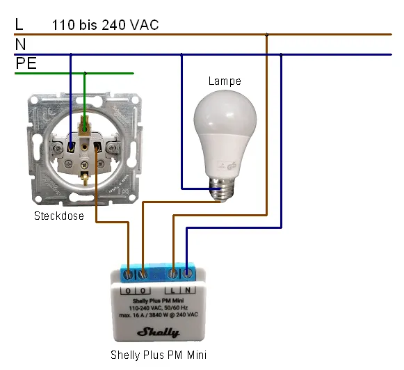 Aus der Grafik können wir nun entnehmen, dass die Verbraucher mit dem Leiter „L“ mit dem Shelly verbunden werden. Die Stromquelle des Shellys wird hierbei an die Verbraucher durchgeschleift.