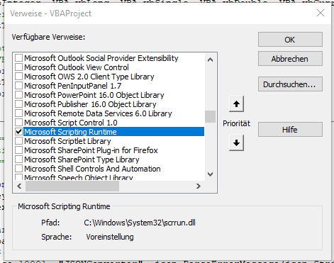 - Microsoft Scripting Runtime (für das Objekt Dictionary), sowie