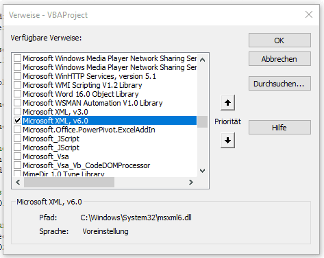 - Microsoft XML, v6.0 (für den HTTP Request)