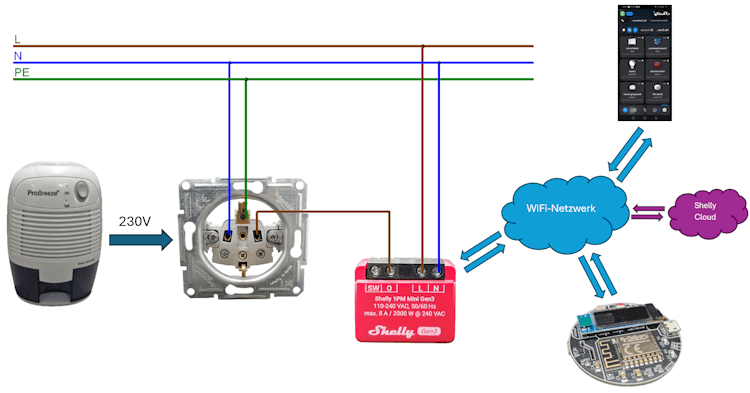 Aufbau der Schaltung – Shelly mit AZ-Visual und Luftentfeuchter