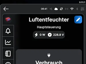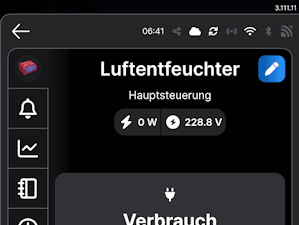 Der Luftentfeuchter wird in meinem Fall nun an die Steckdose, welche wiederum mit dem Shelly verbunden wurde, angeschlossen. Da der Luftentfeuchter über einen Ein-/Ausschalter verfügt und ich diesen in der Stellung „Ein“ belasse, kann ich dieses Gerät jetzt via App steuern.