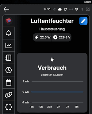 Der Pro Breeze Mini Luftentfeuchter verfügt über einen Sensor, der erkennt, wenn der Wasserbehälter voll ist, und das Gerät dann automatisch abschaltet. Der Shelly PM Mini Gen3 bleibt jedoch weiterhin aktiv und kann die Leistungsaufnahme am Ausgang messen, um die aktuelle Leistungsaufnahme des Luftentfeuchters zu überwachen. Auf diese Weise lässt sich der Zustand des Luftentfeuchters erkennen und wir können über eine Szene eine Benachrichtigung senden, wenn der Wasserbehälter voll ist und das Gerät abgeschaltet wurde.