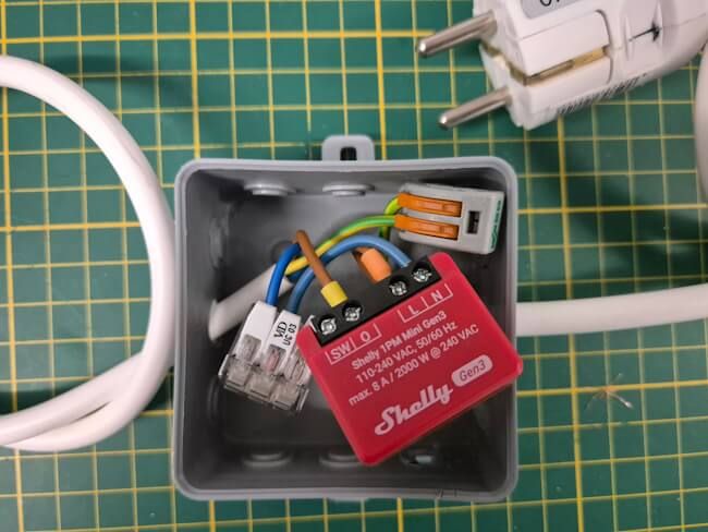 Wenn du dir den Aufbau mit dem Shelly 1PM Mini vereinfachen möchtest, dann verwende einfach den Shelly Plug S, dieser ist ein Steckerfertiger Shelly welcher genauso gut programmiert / angesteuert werden kann.