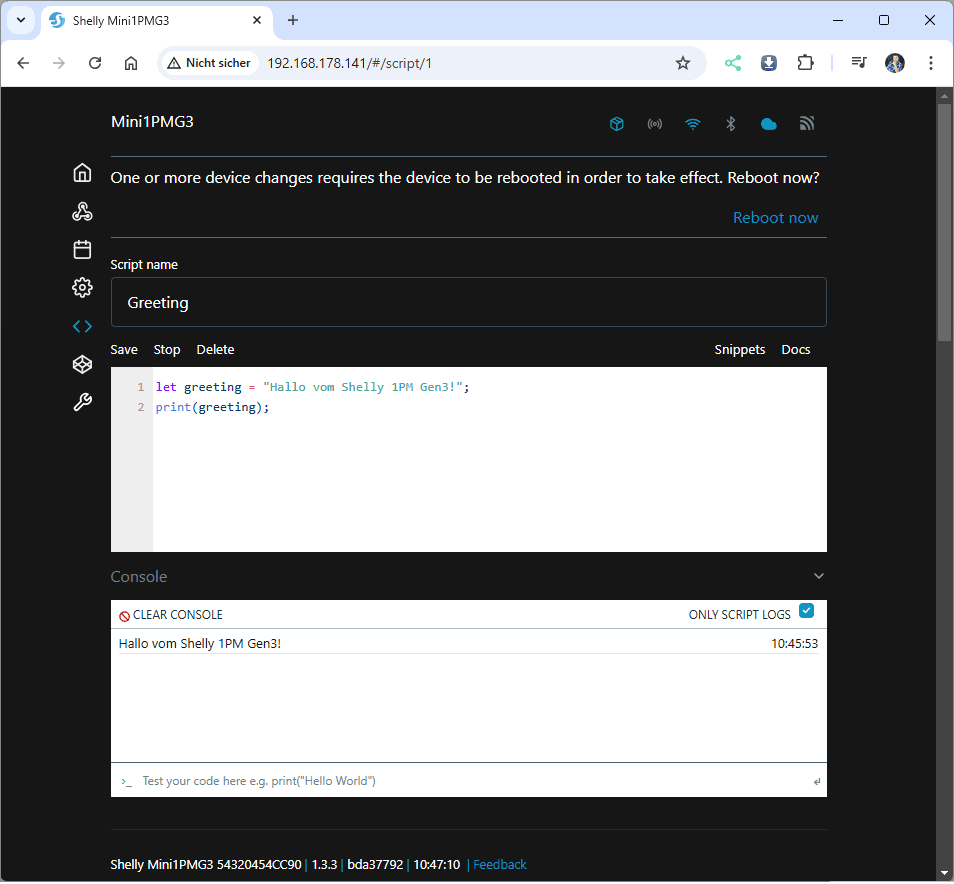 Wenn du ein Gerät besitzt, das Shelly Scripting unterstützt, kannst du das volle Potenzial deiner Automatisierungen ausschöpfen – von benutzerdefinierten Steuerungen bis hin zur Kommunikation mit anderen Systemen über HTTP.