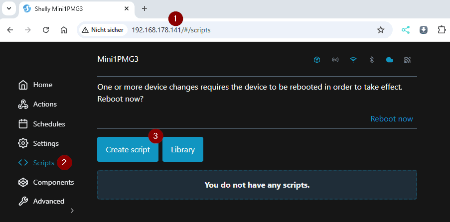 - Im Hauptmenü des Webinterfaces findest du den Punkt „Scripts“.