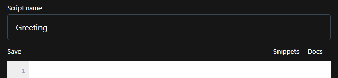 - Nach der Namensvergabe kannst du direkt in den Editor schreiben. Hier steht dir eine Oberfläche zur Verfügung, in der du deinen JavaScript-Code eingeben und speichern kannst.