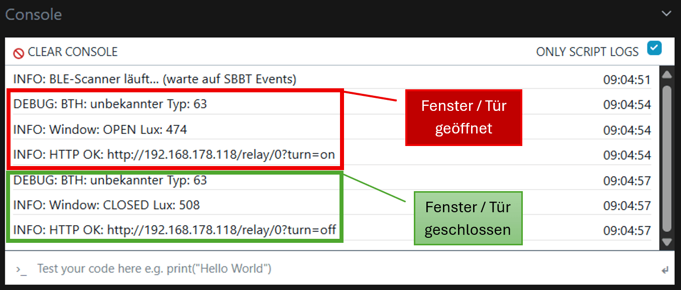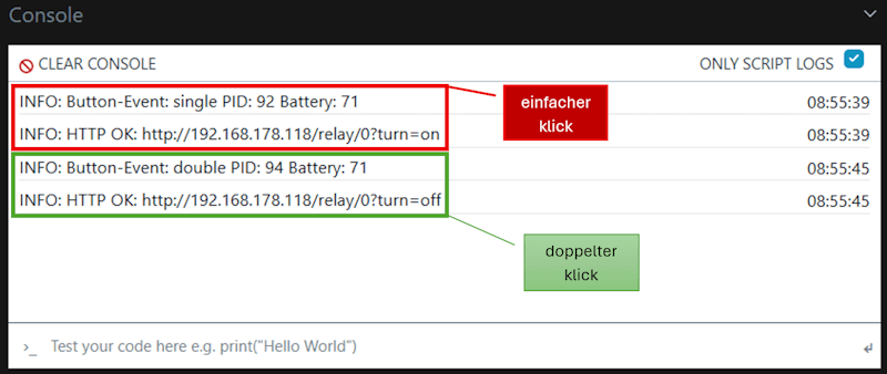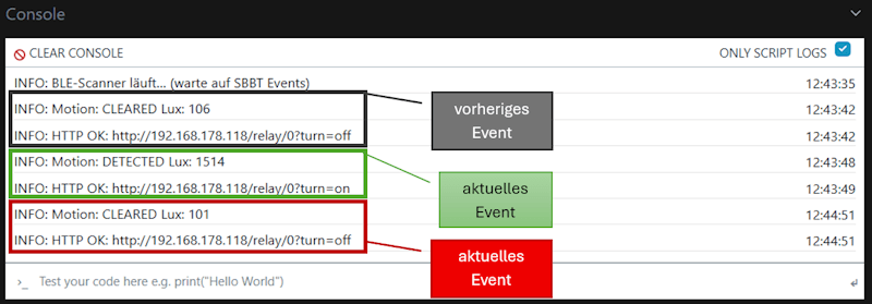 Genau hier kommt Shelly Scripting ins Spiel: Mit einem eigenen Script kannst du die BLU Events flexibel auswerten und beliebige HTTP-Requests absetzen – egal ob an einen anderen Shelly, einen ESP32, ein Smarthome-Gateway oder einen Webservice.