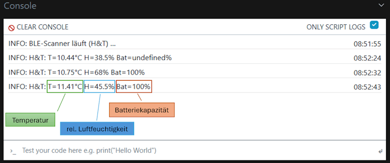 Ich habe Ihr Skript in meinen Shelly Plus Plug S implementiert, welcher Shelly BLU HT als BLE-Observer ausliest. Firmware stand 26.11.2025 20:40.