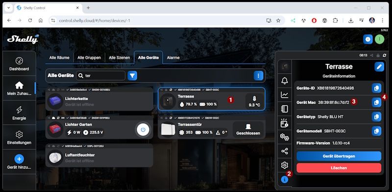 Nachfolgend das gesamte Script welches alle drei Geräte behandelt, du musst hier lediglich deine MAC Adresse eintragen. Diese findest du in der Shelly Cloud oder der App Shelly Smart Control unter den Geräteinformationen.