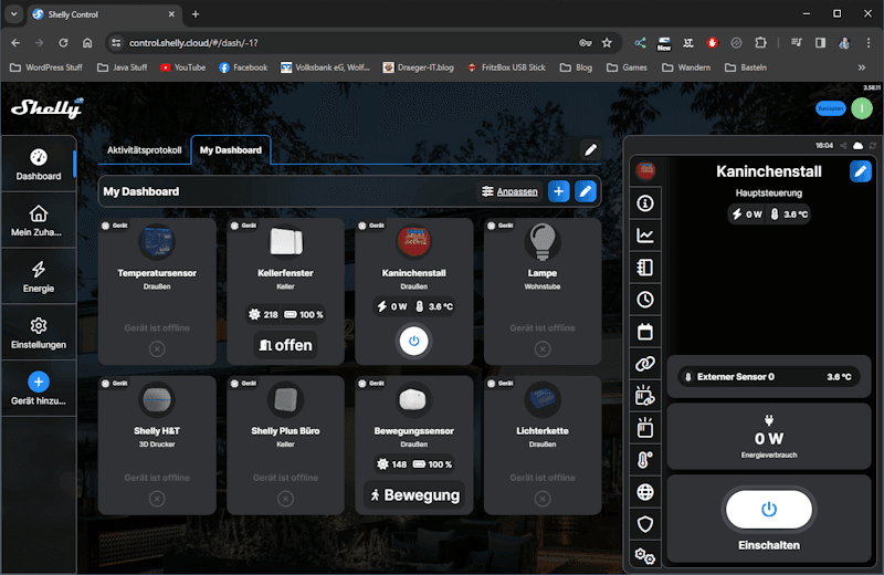 Deine eingerichteten Shelly Geräte kannst du nicht nur über eine App verwalten, sondern auch in der Cloud über deinen PC im Browser.