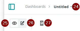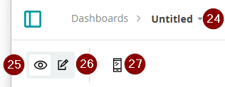 Die Schaltfläche mit dem Bleistift (26) dient dazu, den Bearbeitungsmodus zu aktivieren. Über diesen Modus können wir dem Dashboard Elemente hinzufügen.