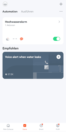 Einrichten einer Szene für Benachrichtigungen vom Tuya Wasserleck-Detektor
