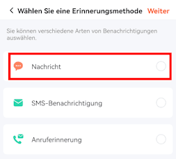 Die SMS-Benachrichtigung & Anruferinnerung ist ein kostenpflichtiges Feature der App, für welche du spezielle Pakete buchen musst.