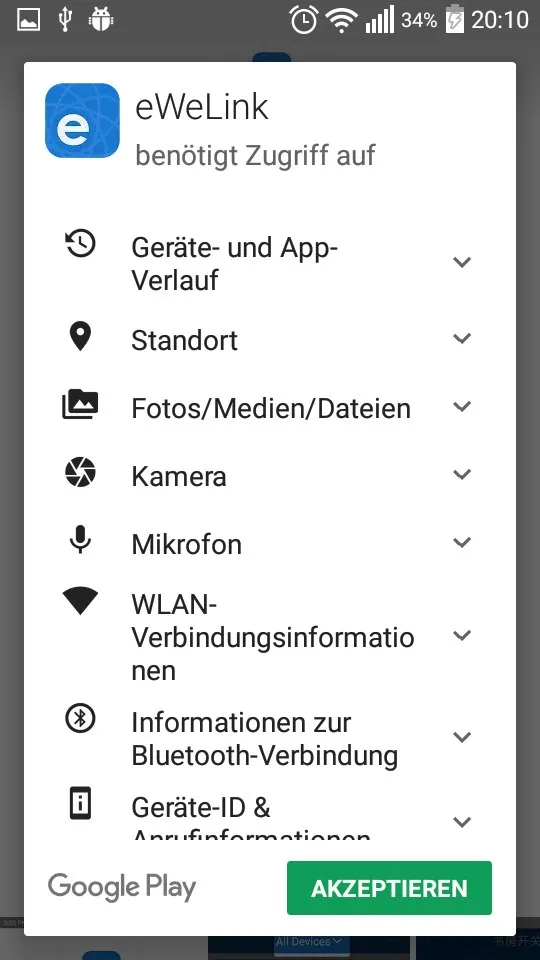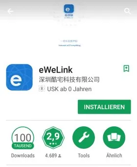 Die Android-App „EWelink“ (im nachfolgenden nur noch als App bezeichnet) findet man im Google Playstore unter dem Suchbegriff „ewelink“ oder hier bequem über den Link >>hier<<.