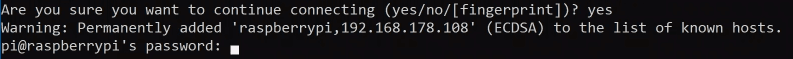 Erste Anmeldung via SSH an den Raspberry Pi