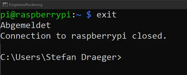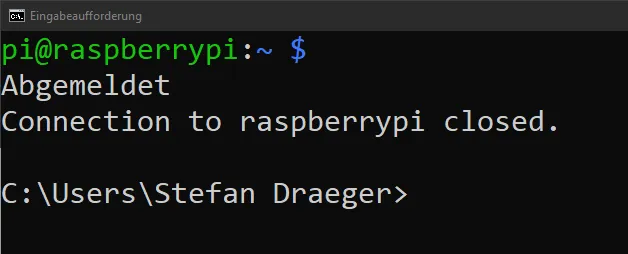 • Abmelden vom Raspberry Pi und vom SSH Client